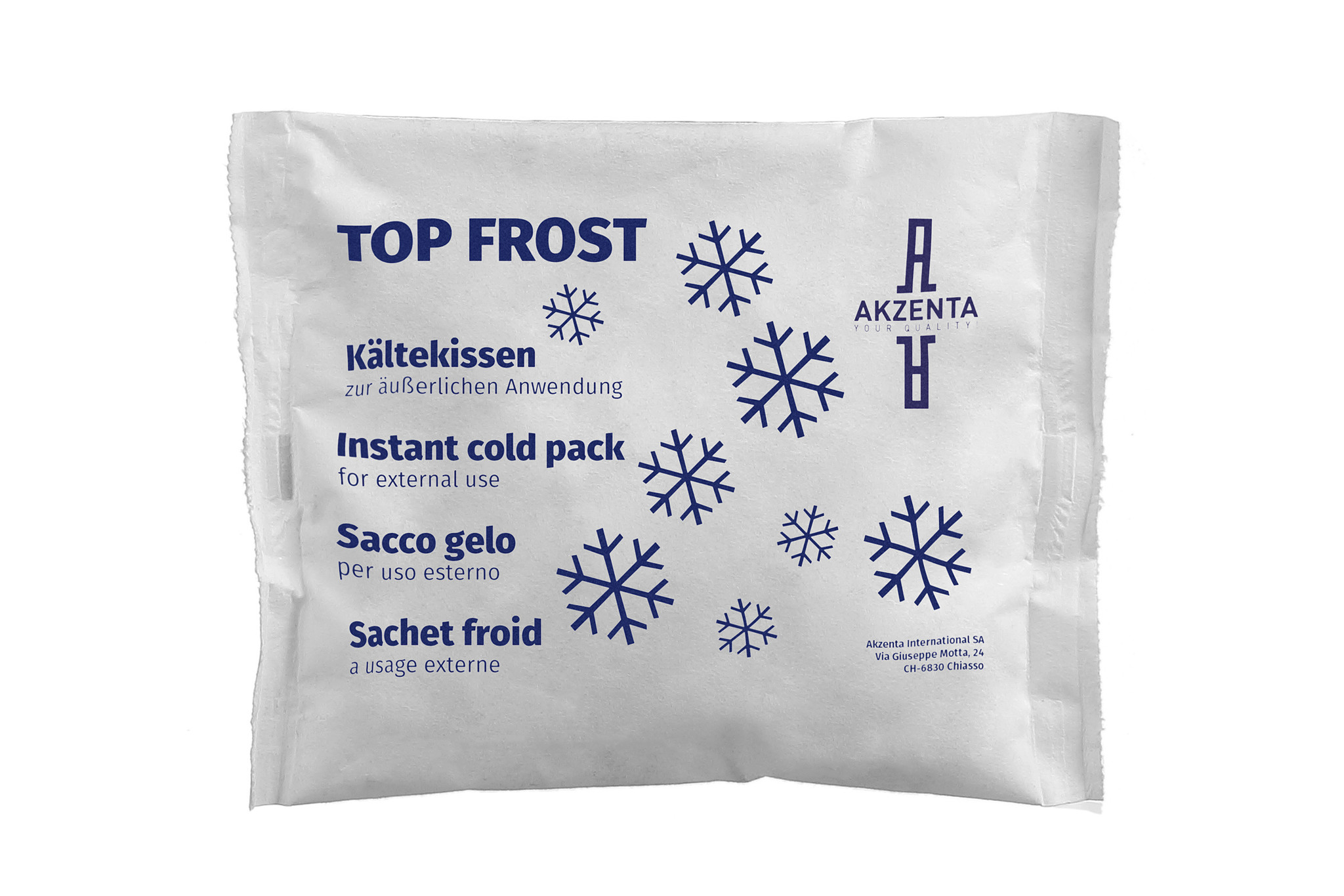The Akzenta Top Frost Instant Cold-Bags are developed with your needs in mind. By pressing on the TOP FROST pouches and gently shaking them, an internal reaction between the water bubble and the azotic salt compound occurs. This reaction creates an endothermic reaction, causing the temperature to drop immediately to -5°C.